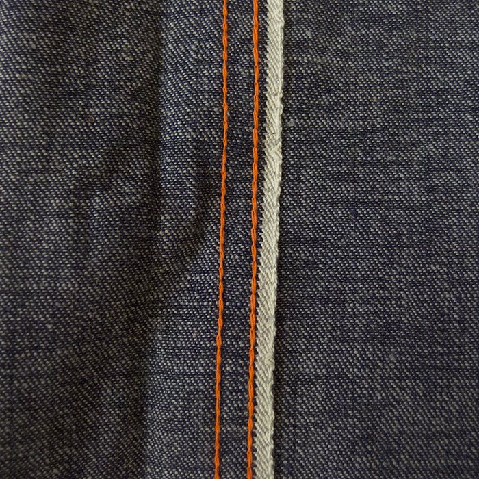 At the outseam around the thighs, the selvedge has come out because they weren't sewn enough.