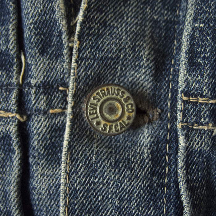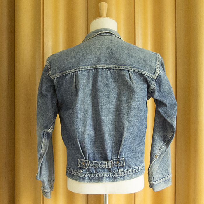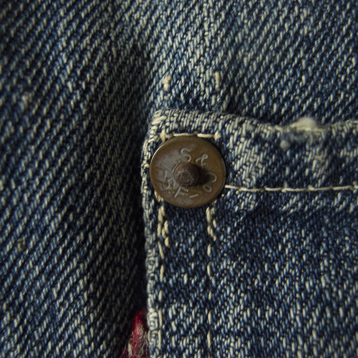 This is a Levi's first type jacket manufactured during the Second World War, and it was made of jeans and The specifications have also been simplified to conserve supplies, and the part number is now marked with an "S" for "simplified". It becomes the "S506XX". The major difference in specification is the omission of the pocket flap and the number of front buttons. It switched to the World War II model around 1942. It is said to have been in production until 1946, after the war ended.